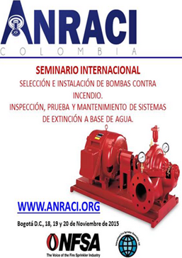 La Asociación Nacional de Sistemas de Rociadores Automáticos de Colombia invita al seminario internacional de selección de bombas contra incendio, inspección, prueba y mantenimiento de sistemas de extinción a base de agua.